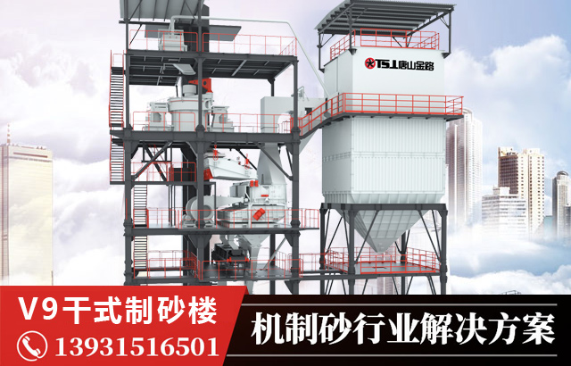 唐山金路V9制砂樓采用立軸沖擊式破碎機和空氣篩組成的返回式閉路系統(tǒng),大幅的增加了原來難以生產(chǎn)的0.6mm到0.15mm之間的粒度。實現(xiàn)了粒度、粒形都可以與天然砂相比擬的機制凈砂。并且通過加濕拌合機可以設(shè)定適當(dāng)?shù)暮剩粫a(chǎn)生產(chǎn)品粒度離析的問題。